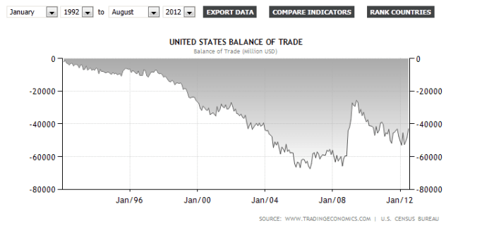 In case you haven’t noticed, food prices are rising everywhere, currencies are being devalued globally, and America doesn’t export anything except papers called “dollars” and “treasuries”. See the chart below. That’s the US trade deficit. What plugs up the hole to bring it back to zero? Paper. When everyone realizes that the paper is actually worthless because America is not good for its debts, the Empire will come crashing down and Tauber will have to follow my advice to leave everyone alone due to complete lack of any alternative.